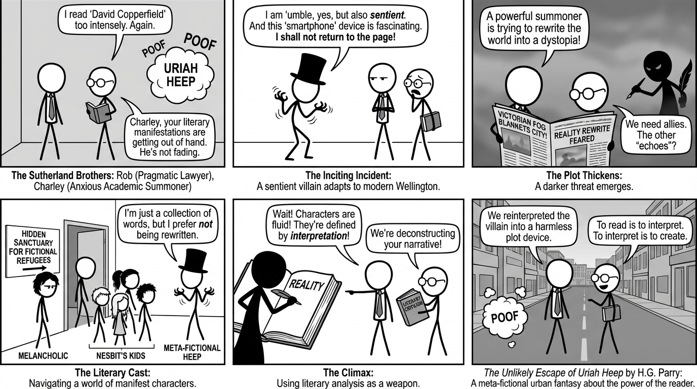 The plot thickens as a mysterious sickness begins to affect the fictional residents, and a darker threat emerges. A powerful summoner is attempting to unravel the barrier between fiction and reality, intending to rewrite the world into a Victorian dystopia. Rob and Charley must navigate a cast of literary figures—including a feral version of the five children from E. Nesbit’s works, a melancholic Heathcliff from Wuthering Heights, and the titular Uriah Heep—to uncover the conspiracy.