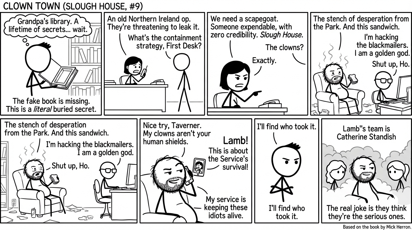 “Clown Town” reinforces Mick Herron’s reputation for crafting espionage thrillers that are as funny as they are tense. By weaving a mystery about a missing book with a high-level political threat rooted in British history, the novel provides a compelling stage for its ensemble cast. It balances the absurdity of the slow horses’ daily existence with the genuine peril they face, offering a sharp critique of institutional decay while celebrating the resilience of the marginalized agents who operate within it.