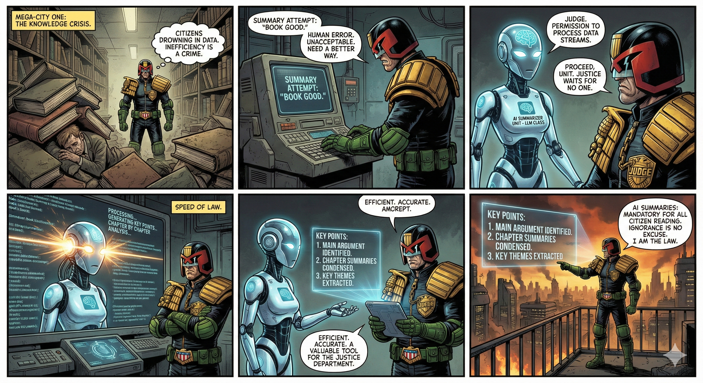 For most books, Google’s LLM produced solid summaries, and the visuals were particularly impressive. When generating comic strips, I asked the model to mimic xkcd’s style, and both the images and tone felt appropriate. The infographics were excellent, with very few spelling mistakes. That said, I would prefer a less dramatic visual style and could likely get even better results with more prompt refinement.