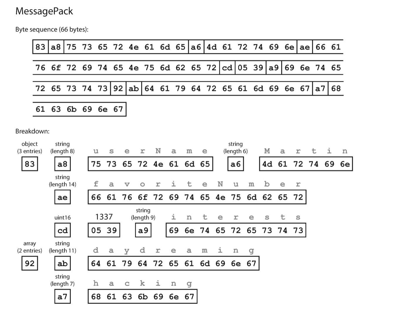 MessagePack encoding example